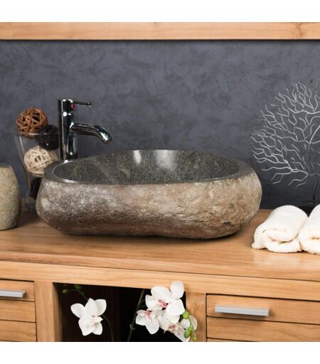 Wanda Collection - Grande vasque en pierre naturelle galet de rivière 50 cm