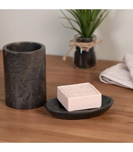 WANDA COLLECTION Ensemble gobelet porte savon en marbre noir
