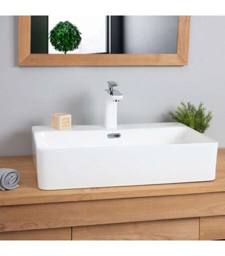 Cette grande vasque aux bords fins et aux angles arrondis se mariera parfaitement avec un meuble en bois foncé ou en bois clair.Élégante et moderne, sa taille de 60cm permet un certain confort d'utilisation.Le système d'installation est accessible à tous, la vasque ne demande pas d'encastrement, elle se pose simplement sur un meuble sous vasque. Elle peut également être suspendue au mur pour un rendu plus design.Cette vasque est également équipée d'un trop plein chromé évitant ainsi les débordements.Pour l'entretien, nous vous conseillons d'utiliser une éponge et du savon. Pensez à éviter les produits corrosifs pour ne pas abimer la céramique !Découvrez notre sélection de robinet. Dimensions vasque Longueur : 60 cm Largeur : 42 cm Hauteur : 13 cm Largeur de la plage : 10 cm Attention, il faut éviter les produits d'entretien abrasifs. Voir les bondes compatibles (vendues séparement) Chromée Noire Blanche ...