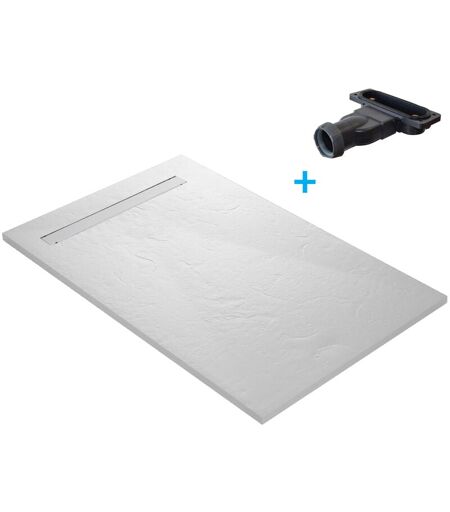 U-tile - Receveur de douche caniveau ultra léger en résine imitation ardoise - blanc + natte étanche + siphon ultra plat - 120 x 90 cm