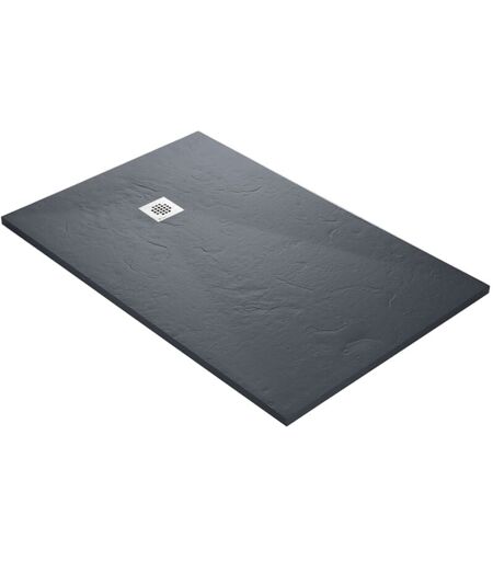 U-TILE Receveur résine 100 x 80 cm gris ardoise imitation ardoise - grille carrée excentrée