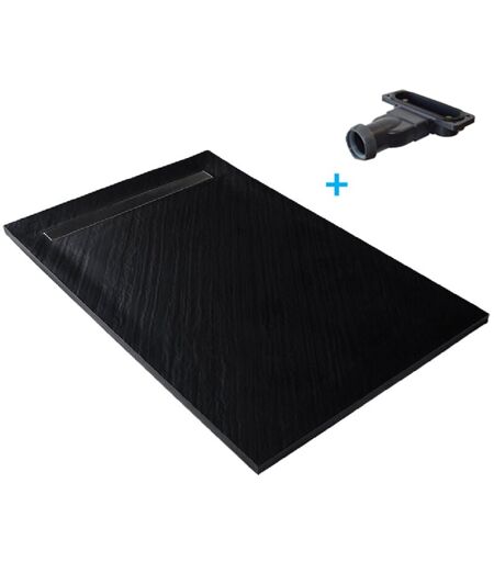U-TILE Receveur de douche noir 120 x 90 cm haute densité pierre naturelle - grille caniveau