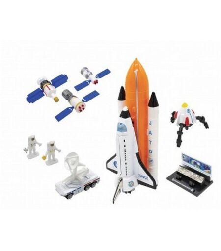 Un set complet sur le th?me de l'espace pour des heures de jeu ! La navette spatiale est en m?tal. Son syst?me ? friction permet de la faire rouler vite ! Ses portes s'ouvrent et lorsqu'on appuie sur le bouton noir, lumi?re et son de d?collage s'activent. De nombreux accessoires sont inclus pour inventer les plus belles histoires. N?cessite 3 piles LR41 incluses. ...