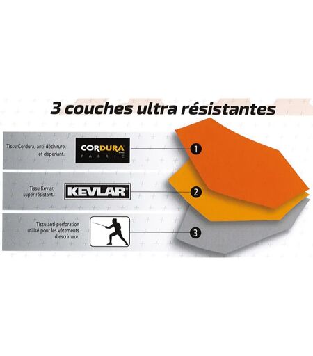 Gilet de Protection Verney Carron Rhino Dog kevlar orange et kaki Le gilet de sécurité fluo pour chien Rhino Dog est ultra résistant. Il protège votre chien des épines noires, ronciers, sangliers et obstacles en tout genre lors d'une traque. Sa composition révèle une innovation technique unique sur le marché. Caractéristiques Gilet de Protection Rhino Dog : Couche extérieure : 100% polyester cordura® Couche intérieure : renforcé d'une couche 100% kevlar® Couche anti-perforation : utilisée pour les vêtements d'escrimeurs Ergonomique : empêche les brûlures et les frottements sur les membres de votre chien Filet intérieur : pour une bonne aération Passant : pour le cou Bande rétro réfléchissante Coloris : orange et kaki Tailles : correspondent au tour de poitrail du chien Paré de ce gilet, votre chien sera protégé des agressions les plus violentes. Ce gilet, grâce à sa conception minutieuse, garantit une protection optimale lors de vos sorties. Investir dans le gilet de protection Rhino Dog, c'est assurer la sécurité de votre fidèle compagnon ! ...