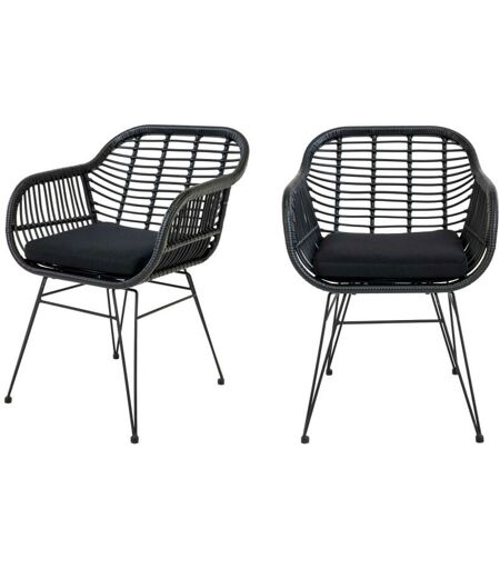 House Nordic - Lot de 2 fauteuils indoor/outdoor aspect rotin et métal avec coussin - Noir - trieste