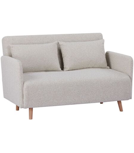 Drawer - Canapé convertible 2 places en tissu bouclette pieds bois clair L120cm - Beige - belushi