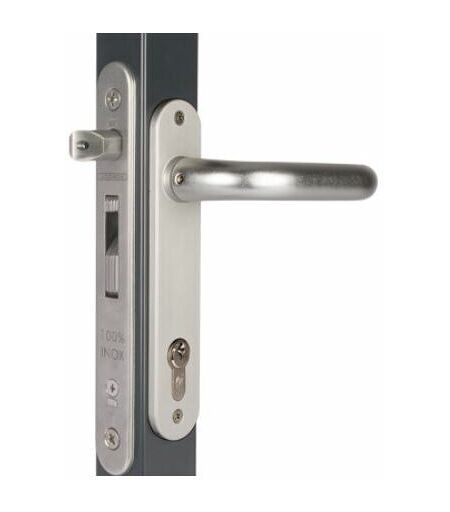 Description générale Serrure à encastrer en acier inoxydable, conçue pour des axes de 20 mm et des profils de 40 mm et plus. Idéale pour une utilisation avec des portes en acier, aluminium et PVC, cette serrure assure une fermeture sécurisée grâce à son mécanisme robuste. Spécifications techniques Mécanisme 100% en acier inoxydable Réglage du pène demi-tour jusqu'à 10 mm sans démontage Rappel du pêne demi-tour à la clé Pêne dormant en forme de crochet pour une sécurité accrue Ancrage du crochet : 21 mm Entraxe cylindre - Béquille : 92 mm Compatible avec tous les cylindres européens Compatibilité et accessoires Utilisable avec des portes en acier, aluminium et PVC Poignées à commander séparément Option de plaque de propreté en polyamide ou en aluminium Installation La serrure se monte rapidement grâce au système breveté 'Click-It', évitant ainsi le taraudage du profil. Suivez les instructions fournies pour une installation sécurisée. Utilisation Cette serrure est conçue pour assurer ...