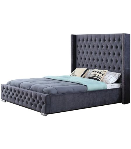 Meubler Design - Lit Design Grande Tête De Lit Lia - Velours Gris - 140x190, Métal, Style , 220 x 160 x 176 cm