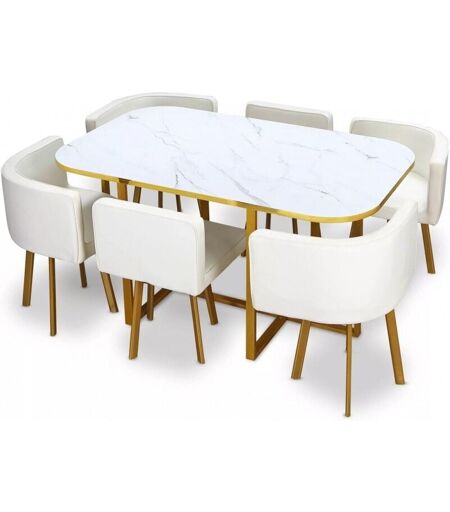 Meubler Design - Ensemble Table à Manger + 6 Chaises Encastrable Popup Xl - Marbre Blanc, Bois mdf, Polyuréthane, Rectangulaire, Style Contemporain,