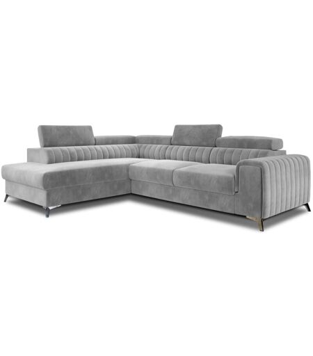 Meubler Design - Canapé d'angle convertible velours appuis-tête réglables loza - Coffre et pieds acier chromé-Gris clair-angle gauche