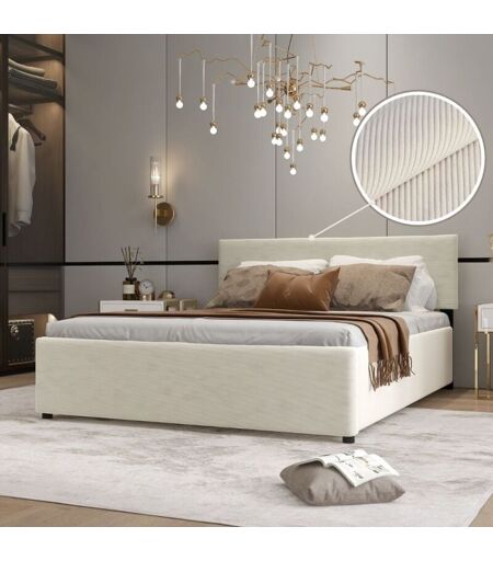 Meubler Design - Lit Velours Côtelé Avec Coffre De Rangement Andrea - Velours Côtelé Beige - 160x200, Style , x x cm