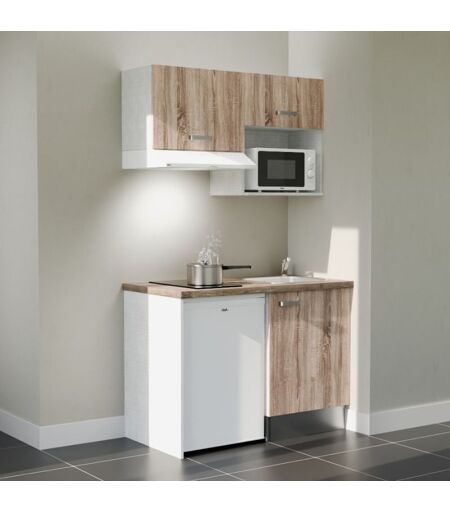 CUISIBANE Kitchenette K02L-PT - 120 cm avec plan de travail et évier - emplacements frigo, hotte et micro-ondes - Façade Bois - Plan Bois - Evier Inox