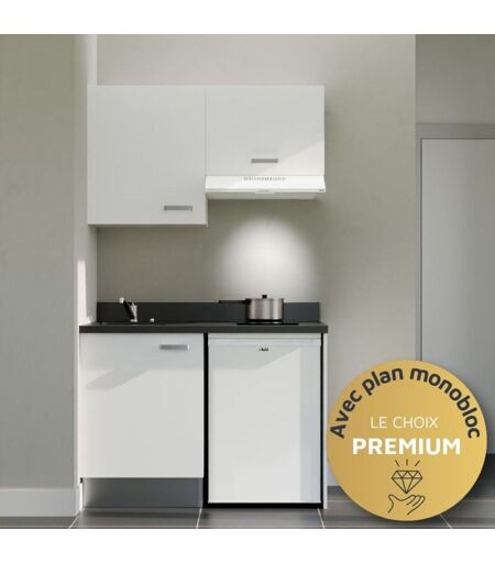 CUISIBANE Kitchenette K01L - 120 cm - emplacements frigo top et hotte-Blanc-Nero-évier à gauche