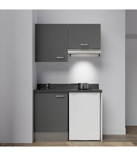 CUISIBANE Kitchenette K01L - 120 cm - emplacements frigo top et hotte-Gris-Nero-évier à gauche