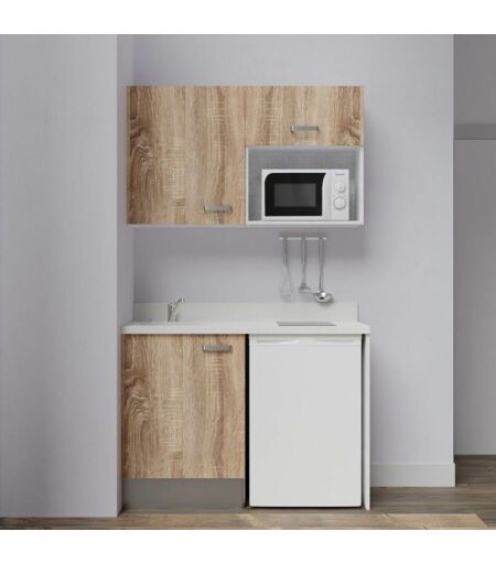 CUISIBANE Kitchenette K07L - 120 cm - emplacements frigo top et micro-ondes-Bois-Snova-évier à gauche