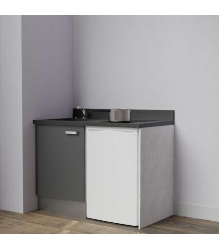 CUISIBANE Kitchenette K08L - 120 cm avec plan monobloc et emplacement frigo top-Gris-Nero-évier à gauche