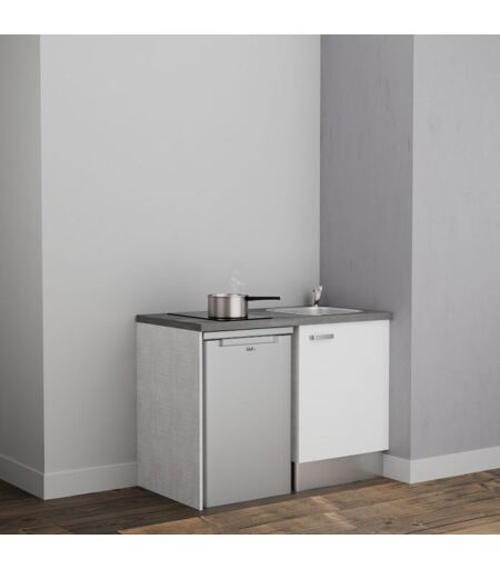 CUISIBANE Kitchenette K08L-PT - 120 cm avec plan de travail et évier - emplacement frigo - Façade Blanc - Plan Gris - Evier Inox - Crédences Non