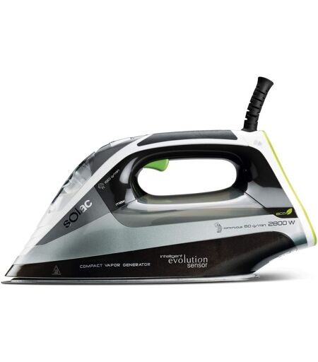 EFFICACE : Repasser à la vapeur sans endommager vos vêtements avec la technologie brevetée de Solac. Vos vêtements bien repassés et sûrs.INTELLIGENT : Système intelligent pour repasser tous vos vêtements sans complications; programmes ou températures; position éco qui s'adapte à tous types de tissus et position turbo pour les tissus les plus compliqués.PUISSANT : Jet de vapeur concentré 190 g / min et vapeur constante même à basse température de 60 g / min; convient au repassage vertical.AUTOMATIQUE : Vapeur automatique tactile; pas besoin d'appuyer sur les boutons; si l'option vapeur est activée; cela sortira automatiquement juste en ramassant l'assiette.SEMELLE ANODISÉE : Avec semelle anodisée Illyum plus résistante et avec un glissement optimal; Système de sécurité Auto-Off qui éteint automatiquement le fer s'il n'est pas utilisé; avertissements acoustiques et visuels; et système anti-calcaire intégré et permanent. ...