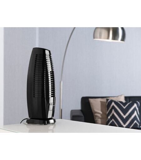Ventilateur de table avec fonction d'oscillation et minuterie Sichler Haushaltsgeräte Même au travail, gardez la tête froide ! Avec votre nouveauventilateur, vous pouvez rapidement créer une brise agréable, que ce soit sur votre bureau, sur votre établi ou sur votre table basse. Facile à utiliser : réglez simplement le niveau de ventilation désiré. Si nécessaire, il suffit d'appuyer sur un bouton pour enclencher l'oscillation. Et avec une minuterie pouvant durer jusqu'à 7,5 heures, vous n'avez même pas besoin de penser à l'éteindre. Elégant et compact : grâce à son design colonne, il prend très peu de place, et son boîtier noir brillant apporte une touche de chic contemporain. Ventilateur colonne de table, 25 W, par Sichler Vitesse réglable sur 3 niveaux Oscillation horizontale sur 75°, désactivable Minuteur d'arrêt : programmable de 30 minutes à 7,5 heures (par paliers de 30 minutes) Utilisation ultrasimple : 4 touches de commande : vitesse, minuteur, oscillation et arrêt LED de statut : mode et fonctionnement Débit volumique max. : 0,99 m³/minute Rapport de service : 0,05 (m³/minute.)/W Niveau de puissance acoustique : 45,8 dB(A) Vitesse max. du flux d'air : 3,14 m/s Puissance absorbée : 25 W Puissance absorbée en mode Veille : 0,95 W Boîtier robuste avec socle large et grille de protection Alimentation : 230 V Dimensions : 36,4 x 12,5 x 13,5 cm, poids : env. 1,3 kg ...