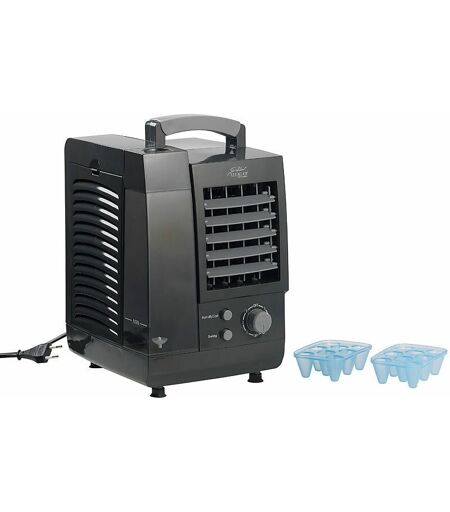 Cet appareil 3 en 1 rafraîchit, humidifie et filtre l'air ambiant. Grâce à ces trois fonctions, dites adieu aux désagréments de l'été. Moderne, compact et silencieux : ce rafraîchisseur tient sans problème sur votre bureau, où son design soigné apporte une touche d'élégance. Il est d'ailleurs tellement silencieux qu'il ne vous dérangera pas dans votre travail. Quand la température monte, gardez la tête froide. Pour un rafraîchissement encore plus efficace, ajoutez simplement des glaçons de la forme adaptée dans le réservoir d'eau. Un moule est fourni pour vous permettre de les confectionner. Le rafraîchisseur d'air produit une brise d'une agréable fraîcheur, diffusée dans toute la pièce grâce à la fonction oscillation. Pratique : la poignée vous permet de déplacer le rafraîchisseur d'air comme bon vous semble. Appareil 3 en 1 : rafraîchisseur, purificateur et humidificateur Design moderne : idéal sur un bureau, à côté d'un ordinateur etc. 3 niveaux de vitesse avec fonction humidification Fonction oscillation avec grille de ventilation réglable verticalement Le filtre débarrasse l'air ambiant de la poussière Volume d'air : env. 100 m³/h Vitesse du flux d'air : 4 m/s Volume de vaporisation : 700 ml/h Technologie en "nid d'abeille" : efficacité énergétique grâce à la vaporisation de froid Moules pour préparer des glaçons à verser dans le réservoir d'eau pour encore plus de fraîcheur Réservoir d'eau transparent amovible : 0,8 L Puissance : 60 W Volume sonore : < 60 dB Poignée de transport pour un déplacement facile 4 pieds antidérapants en caoutchouc pour un maintien sûr Alimentation : 230 V, longueur du câble : 1,5 m Dimensions compactes : 20 x 30 x 23 cm, poids : 2 kg Appareil 3 en 1 livré avec 2 moules à glaçons Également pertinent ou approprié pour : climatiseur. ...