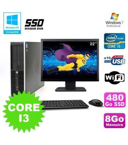 Lot PC HP Compaq 6200 Pro SFF Core i3 3.1GHz 8Go 480Go DVD WIFI W7 + Ecran 22