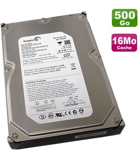Marque : SEAGATE Modèle : Barracuda ES ST3500630NS Interface : Serial ATA III Format de Disque : 3" 1/2 Capacité : 500 Go Vitesse de rotation : 7200 RPM Taille du cache : 16 Mo Produit de seconde main testé. ...