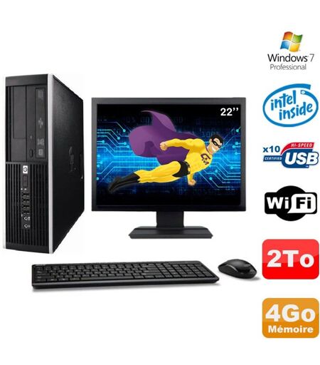 Lot PC HP Elite 6000 Pro SFF E5400 2.7Ghz 4Go Disque 2To WIFI W7 Pro + Ecran 22