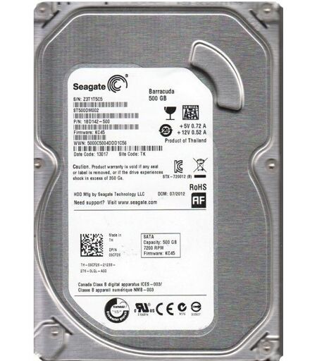 Marque : SEAGATE Modèle : ST500DM002 Interface : Serial ATA III Format de Disque : 3" 1/2 Capacité : 500 Go Vitesse de rotation : 7200 RPM Taille du cache : 16 Mo Produit de seconde main testé. ...