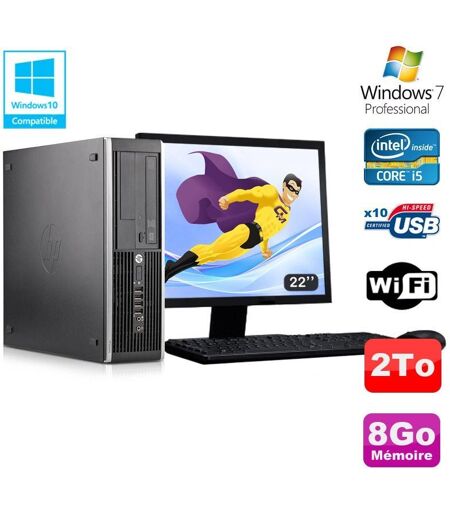 Lot PC HP Elite 8300 SFF I5-3470 3.2GHz 8Go 2To Graveur Wifi W7 + Ecran 22