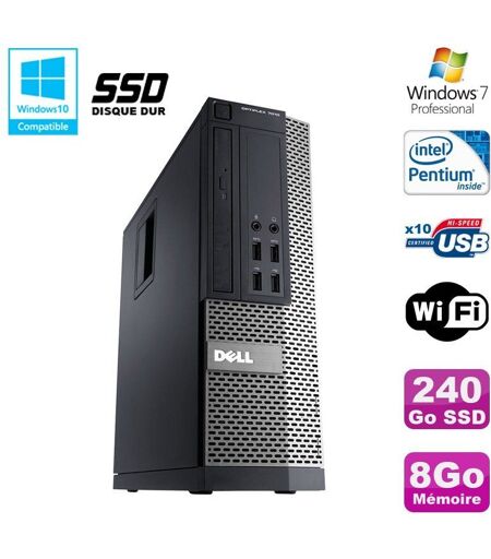PC Dell Optiplex 7010 SFF Intel G870 DVD Ram 8Go Disque 240Go SSD Wifi Windows 7