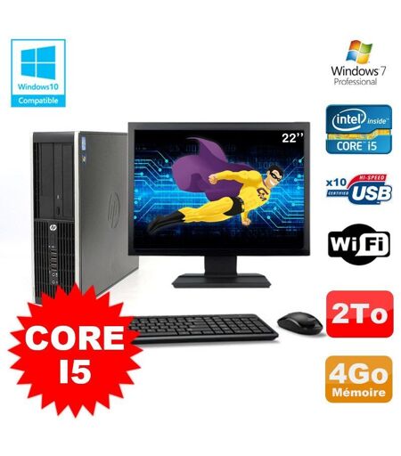 Lot PC HP Elite 8200 SFF Core I5 3.1GHz 4Go 2To DVD WIFI W7 + Ecran 22