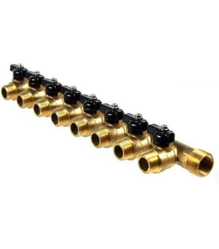 Arcanaute - Collecteur mâle 3/4' (20/27) - femelle 1/2' (15/21) avec mini-vannes monobloc 8 départs mâle 1/2' (15/21)