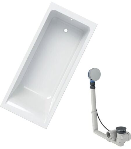 Geberit - Baignoire acrylique sanitaire rectangulaire renova plan 180x80cm avec pieds + Vidage avec actionnement rotatif, d52