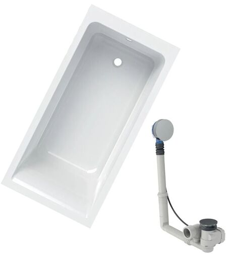 Geberit - Baignoire acrylique sanitaire rectangulaire renova plan 160x70cm avec pieds + Vidage avec actionnement rotatif, d52