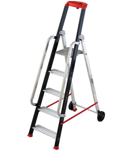 Hailo - Escabeau professionnel de chantier roulant pliable en aluminium 5 marches