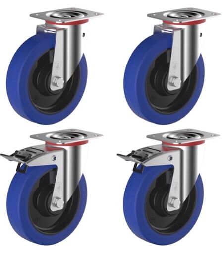 2gt Roues Et Roulettes - Lot de 4 roulettes pivotantes et pivotantes à frein caoutchouc easyroll® bleu 100 mm charge - 540 Kg