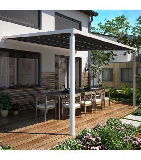 SUNNY INCH ® Pergola adossée aluminium à toile rétractable électrique avec LEDS - 4 x 4 m - Blanc
