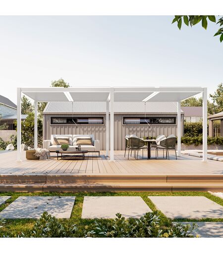 SUNNY INCH ® Pergola bioclimatique autoportante à lames orientables en aluminium - Armature blanc - 5,8 x 3 m