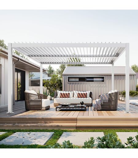 SUNNY INCH ® Pergola bioclimatique autoportante à lames orientables en aluminium - Armature blanc - 4 x 4 m