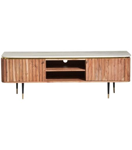 MADE IN MEUBLES Meuble tv en bois d'acacia et marbre blanc Judith
