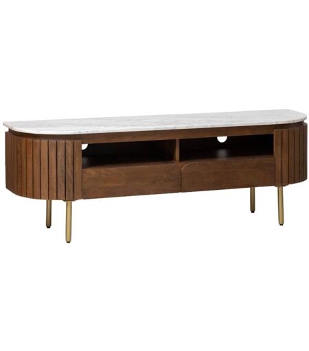 MADE IN MEUBLES Meuble TV en marbre et bois de manguier Sienne