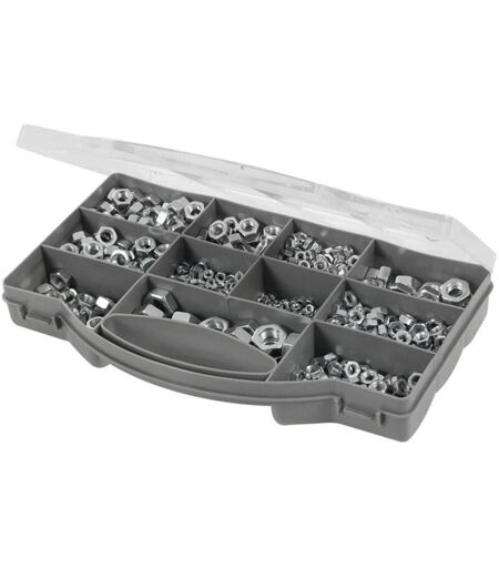 Assortiment d'écrous hexagonaux de M3 à M12. En acier galvanisé pour résister à la corrosion. Partie intérieure filetée. Dimensions : M3, M4, M5, M6, M8, M10 et M12. Dans un coffret de rangement compartimenté très pratique. Coffret de 1000 écrous 6 pans. ...