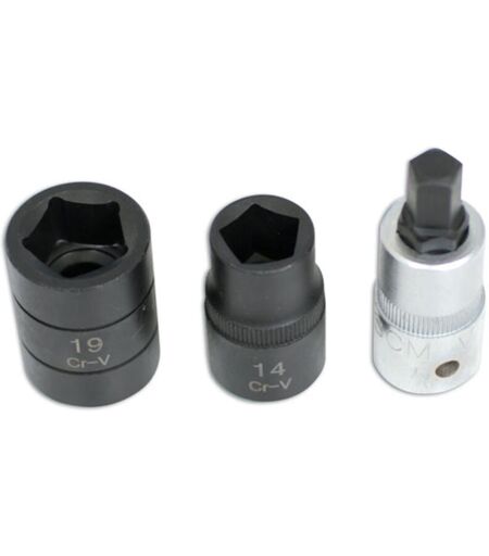 Jeu de 3 douilles pentagonales pour systèmes de freinage Dans un coffret contenant 3 pièces en Chrome Vanadium : 1 douille 5 pans 14 mm x 1/2 pour Opel 1 douille 5 pans 19 mm x 1/2 pour Peugeot, PSA, Renault 1 embout 5 pans 10 mm x 1/2 pour système de freinGirling ...