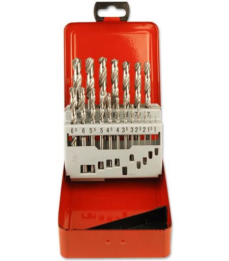 Coffret de 19 forets à métaux hélicoïdaux HSS taillés meulés selon norme DIN 338 Type N. Dimensions : 1 - 1.5 - 2 - 2.5 - 3 - 3.5 - 4 - 4.5 - 5 - 5.5 - 6 - 6.5 - 7 - 7.5 - 8 - 8.5 - 9 - 9.5 - 10. Foret hélicoïdal à rendement élevé. Pour le perçage des aciers et aciers alliés jusqu'à 900N/mm², fontes, bronze, laiton, alliages d'aluminium, etc... Angle de pointe 118 .Coupe à droite. Affûtage en croix selon norme DIN 1412C = Ame amincie. Excellente concentricité.Fini brillant. ...
