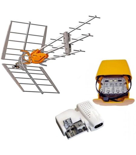 Pack Antenne Rateau tnt dat hd boss uhf Gain 42dB + Alimentation 24V + Amplificateur Easy f 149921 - Televes