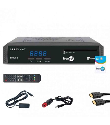 Pack Servimat Récepteur tv satellite hd + carte Fransat + Câble hdmi + Câble 12V + Déport ir