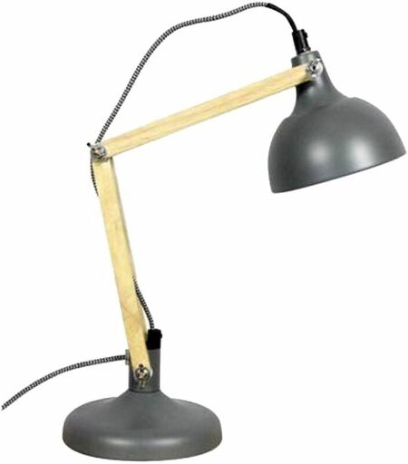 Lampe de table Gris mat et Bois En métal et Bois Largeur 15 cm - Hauteur 42 cm Fonctionne sur secteur, prise Européenne Ampoule E14, max 15 Watts Ampoule non Incluse ...