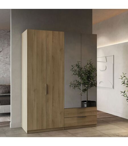 M&S Armoire 4 portes 2 tiroirs 157 cm chêne avec miroir - armoy