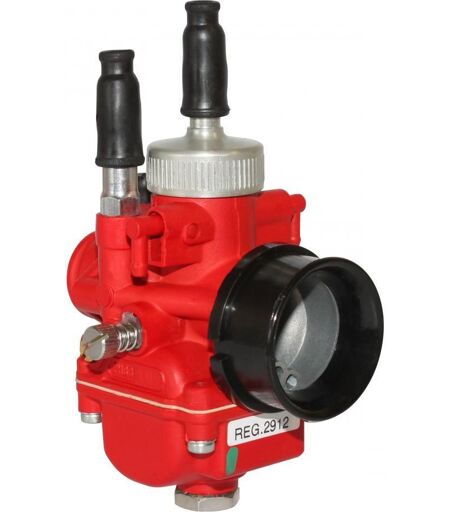 Carburateur DELLORTO PHBG 21 DS Red Label neuf montage souple prévu pour un starter à câble avec prise de dépression et graissage séparé. Ce carburateur est livré avec une cuve en aluminium et une finition roue "spécial séries Red Label". Dimensions: - Diamètre extérieur coté admission: 25mm - Diamètre extérieur coté boite à air sans bague plastique: 32mm - Diamètre extérieur coté boite à air avec bague plastique: 38mm - Longueur du carburateur entre boite à air et pipe d'admission sans bague plastique: 77mm - Longueur du carburateur entre boite à air et pipe d'admission avec bague plastique: 87mm Vendu à l'unité avec bague plastique coté manchon de boite à air et système de starter à câble. Livré conforme à la photo. ...