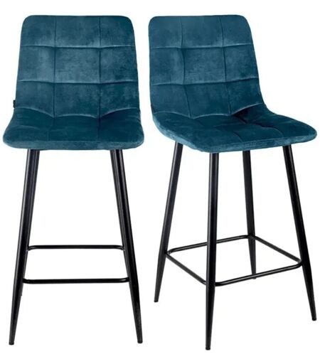 MEUBLETMOI Lot 2 tabourets de bar en velours bleu pieds métal noir – NAMI 2